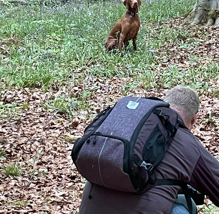 Firstly, we agree on a location that both the owner and dog are comfortable/familiar with. If I am unaware of the location, I will undertake some "scouting" trips to make sure the location is suitable, and will take some test images β often just using my backpack as a substitute for a dog.