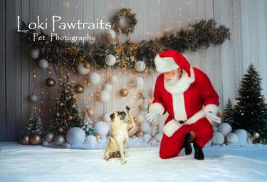 These are indoor sessions and I will come to the owners home to take a variety of images using festive themed backdrops. The session will last between 60-90 minutes and capture your pawsome pets in the holiday mood.